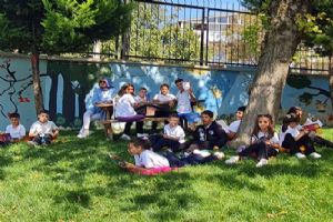 Gazitepe İlkokulu'nda geleneksel hale gelen uygulama bu yıl da devam etti. Sınıf öğretmeni Esra Sarıahmet, öğrencileriyle birlikte eğitim-öğretim yılının açılışını bahçede kitap okuyarak yaptı.