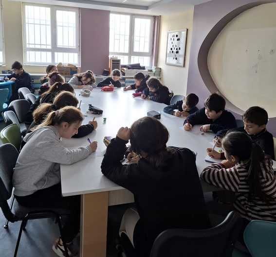 “Her şey bir cümle ile başladı…” temasıyla gerçekleştirilen proje kapsamında öğrenciler, duygu ve düşüncelerini yazıya aktararak kendi hikâyelerini oluşturdu. Öğrenciler yalnızca metin üretmekle kalmadı, aynı zamanda yazdıkları metinlerden yola çıkarak sloganlar belirledi ve afişler hazırladı.