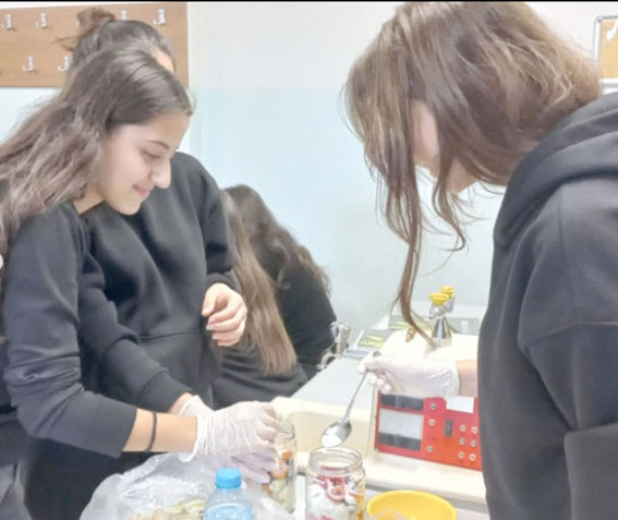 Hasan Sabriye Gümüş Anadolu Lisesi 10. sınıf öğrencileri, etil alkol ve laktik asit fermantasyonu konusu kapsamında balon şişirme ve turşu kurma deneyleri yaparak biyolojiyi uygulamalı olarak öğrendi.