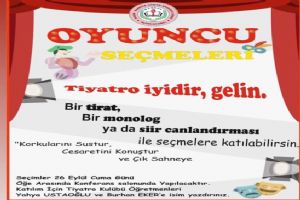 Uzun soluklu tiyatro çalışmalarının ilk adımı, 26 Eylül Cuma günü okulun konferans salonunda atılacak. Sahnede parlamak isteyen tüm öğrenciler seçmelere katılmaya davet edildi.