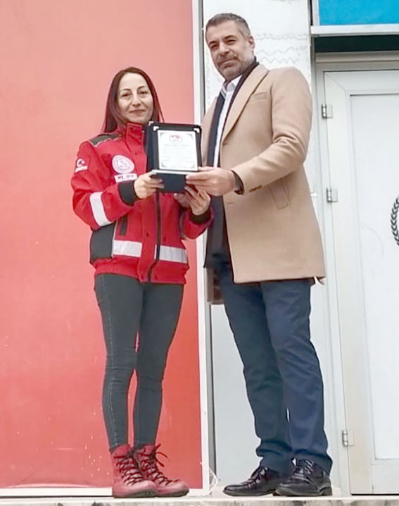 Öğretmenlik gibi yoğun ve meşakkatli bir mesleği sürdürürken milli bir hassasiyet ve fedakârlıkla gönüllü olarak Silivri MEB AKUP (Arama Kurtarma) ekibinde görev alan İBB Abdülezel Paşa İlk ve Ortaokulu Görsel Sanatlar Öğretmeni Canan Gündüz'e teşekkür plaketi verildi. Plaket, Okul Müdürü Ahmet Öngel tarafından takdim edildi.