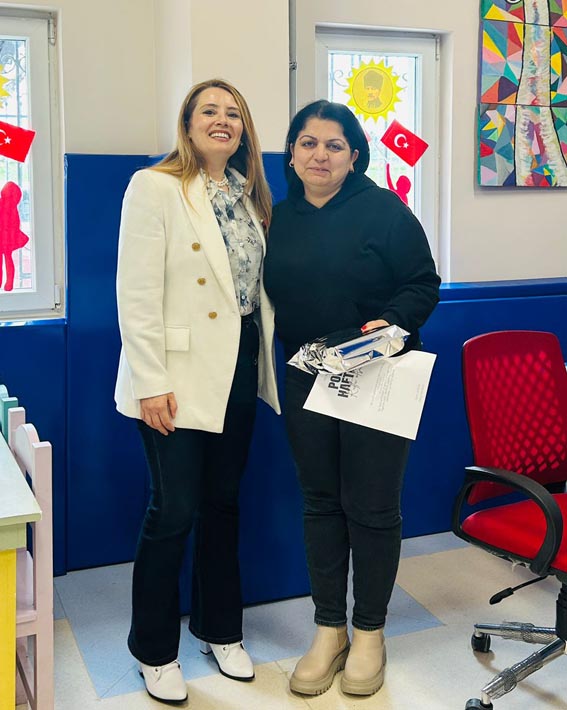 Okul Müdürü Aylin Aydın, 10 Nisan Polis Günü kapsamında emniyet mensuplarının en büyük destekçisi olan polis eşlerini unutmayarak hazırlanan kahve hediyelerini anlamlı notlarla birlikte takdim etti.