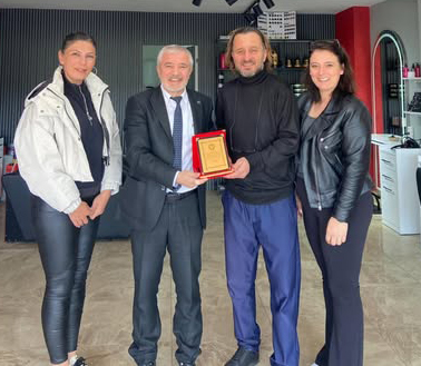 Necip Sarıbekir Mesleki ve Teknik Anadolu Lisesi Müdürü Ramazan Gültekin, 8 Mart Dünya Kadınlar Günü dolayısıyla okulun kadın öğretmen ve personeline yönelik ücretsiz saç kesimi ve fön hizmeti sunan E&S Bayan Kuaförü Saç Tasarım Merkezi sahibi Erol Yılmaz'a teşekkür etti.