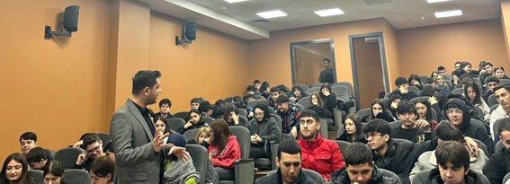 Seminerde öğrencilerle yapay zekâ teknolojilerinin günümüzde programcılık alanına etkileri, geleceğin meslekleri, yazılım dünyasında öne çıkan beceriler ve öğrencilerin kariyer planlamasında dikkat etmeleri gereken başlıklar ele alındı. Öğrenciler, hızla gelişen teknoloji dünyasında yapay zekânın rolü hakkında önemli bilgiler edinme fırsatı buldu.