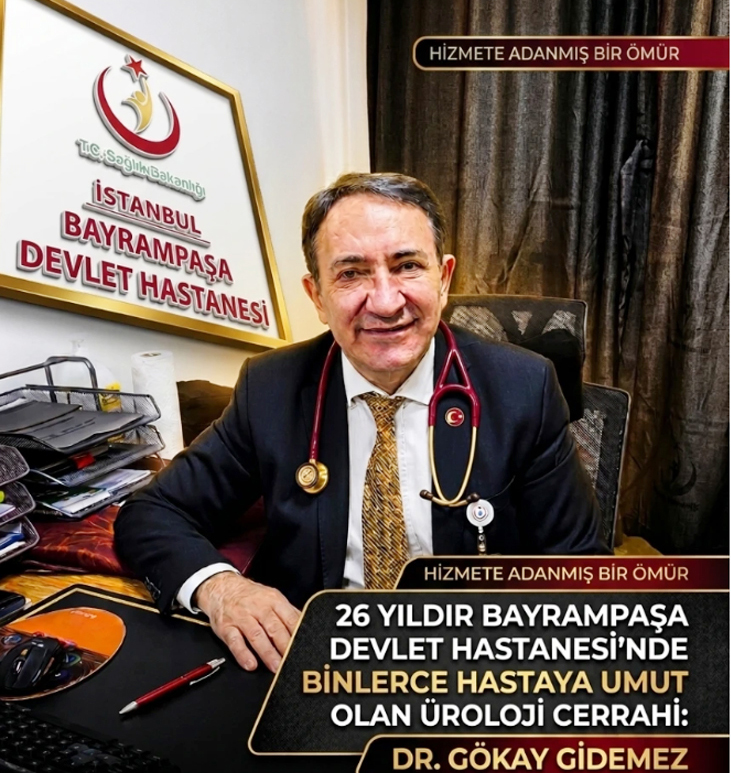 Silivri doğumlu Üroloji Uzmanı Op. Dr. Gökay Gidemez, Bayrampaşa Devlet Hastanesi'nde 26 yılı aşan meslek hayatı boyunca binlerce hastaya şifa dağıtırken disiplinli çalışma temposu ve insani yaklaşımıyla örnek hekimler arasında gösteriliyor.