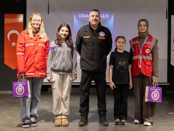 Odak Koleji'nde gerçekleştirilen programda Silivri Arama Kurtarma (SAK) ekipleri, öğrencilere deprem ve doğal afetler sırasında yapılması gerekenler hakkında kapsamlı bilgilendirme yaptı.