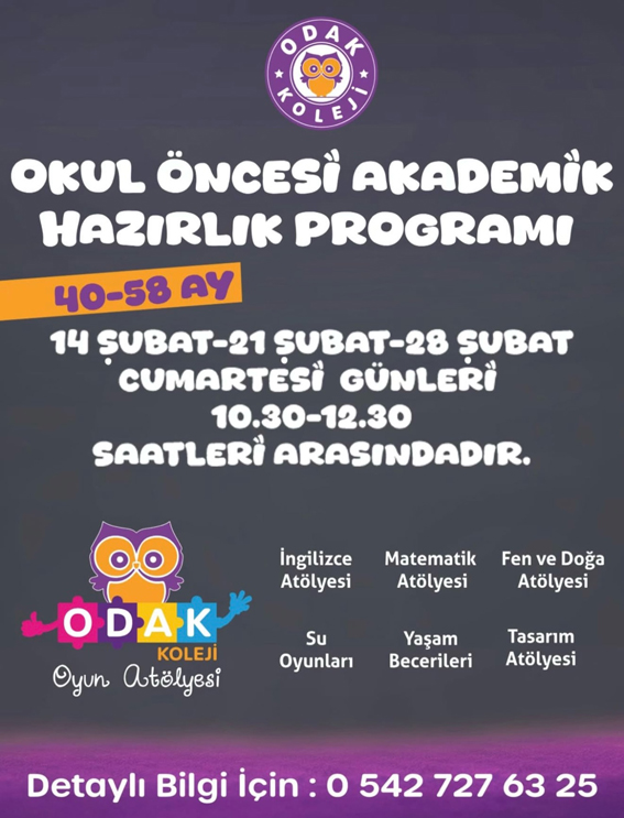 Odak Koleji, okul öncesi dönemde çocukların akademik ve sosyal gelişimlerini desteklemek amacıyla 40–58 ay arası çocuklara yönelik Okul Öncesi Akademik Hazırlık Programı başlatıyor.