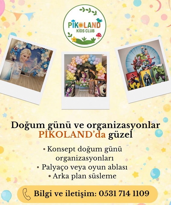 Pikoland Kids Club yetkilileri, çocuklar için unutulmaz doğum günü organizasyonları hazırlamak isteyen ailelerin detaylı bilgi almak için 0531 714 11 09 numaralı telefondan iletişime geçebileceğini belirtti.
