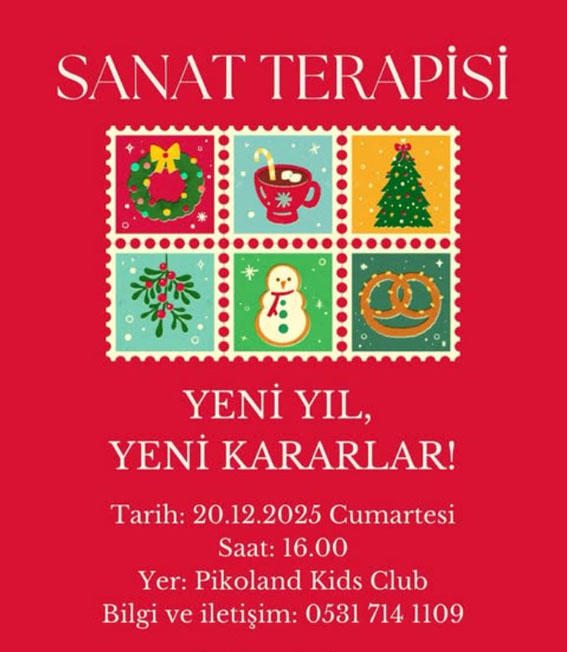 2025'e veda ederken geçmiş yılı değerlendirmek ve 2026 hedeflerini belirlemek isteyen yetişkinler için “Sanat Terapisi: Yeni Yıl, Yeni Kararlar” atölyesi 20 Aralık'ta Pikoland Kids Club'da düzenlenecek.