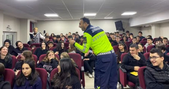 Öğrencilerin ilgiyle takip ettiği eğitimde, günlük hayatta karşılaşılabilecek riskli durumlara dikkat çekilirken, bilinçli birey olmanın ve trafik kurallarına uymanın toplum güvenliği açısından taşıdığı önem vurgulandı.