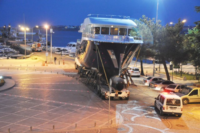 Silivri’de karadan denize indirilen lüks yat ilginç görüntülere yol açtı. Anadolu Hastanesi’nin arka tarafındaki fabrikada üretilen yat akşam saat 19.00’da başlayan yolculuğunu denizde sabah 04.00 sularında tamamladı. Yatın geçebilmesi için sahibi tarafından sahilde bulunan ışık süslemeleri sökülüp yeniden asılması ile ilgili tüm masraflar üstlenildi. Yat saatler süren taşıma işleminin ardından sağlıklı bir şekilde Silivri limanında denizle buluştu.