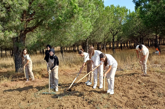 Yıl boyunca tarımsal faaliyetlerini sürdüren öğrenciler; tohum ekimi, fide dikimi, hasat ve fidan dikimi gibi uygulamalı çalışmalarla hem tarımsal üretimin inceliklerini öğreniyor hem de sürdürülebilir tarım bilincini pekiştiriyor. Öğrenciler, toprağın verimliliğini korumanın geleceğe bırakılacak en değerli miraslardan biri olduğuna dikkat çekiyor.