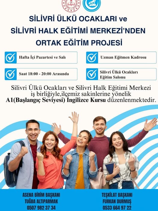 Silivri Ülkü Ocakları ve Silivri Halk Eğitimi Merkezi iş birliğiyle ilçemiz sakinlerine yönelik A1 (başlangıç seviyesi) İngilizce Kursu açılıyor.