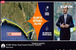 İki yakaya iki tünel projesi yapıyoruz bu tünel uzunluğu Avrupa Yakası'nda 88,2 km Anadolu Yakası'nda 34 km olacak. Tünellerimiz ilk olarak Çayırbaşı-Ayazağa-Levazım-Dolmabahçe olmak üzere 25,7 km tünel projesini yapacağız. Dolmabahçe'den Kilyos'a uzanan tünel zincirimizi halkımıza armağan etmiş olacağız.
