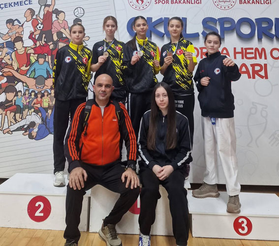 Ertuğrulgazi Ortaokulu öğrencisi Aybüke Başak, Yıldız Bayan 48 kg kategorisinde İstanbul üçüncüsü olurken;