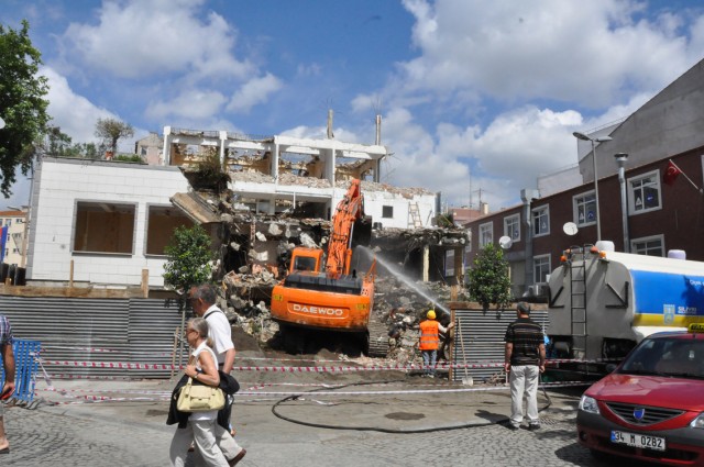 şekilde yıkıldıktan sonra, dün iş makinaları tarafından ilk kepçe otele