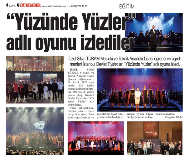 Özel Silivri TÜRAM Mesleki ve Teknik Anadolu Lisesi öğrenci ve öğretmenleri, 29 Aralık 2023 tarihinde, 128 kişilik oyunca kadrosuyla beraber 400 kişilik ekibin göreve aldığı İstanbul Devlet Tiyatroları “Yüzünde Yüzler” adlı oyunu izledi.