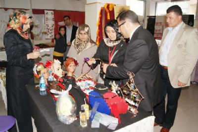 bayanların el emeği göz nuruyla hazırladığı hediyelik eşyaları inceledi ve